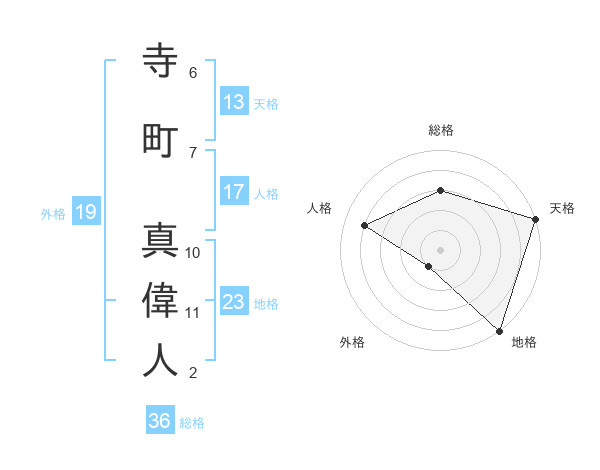 寺町 真偉人さんの地格は23画の5点!