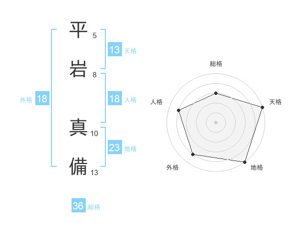 平岩 真備さんの天格は13画の5点!