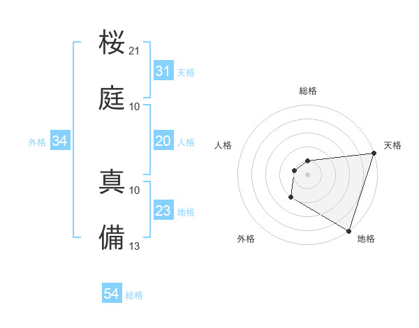 桜庭 真備さんの天格は31画の5点!