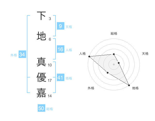 下地 真優嘉さんを姓名の画数から五運を鑑定