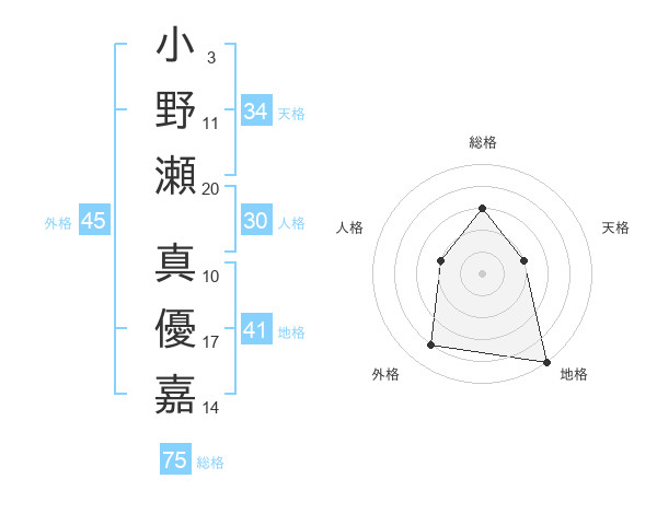 小野瀬 真優嘉さんを姓名の画数から五運を鑑定