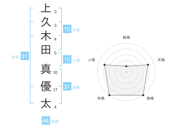上久木田 真優太さんを姓名の画数から五運を鑑定
