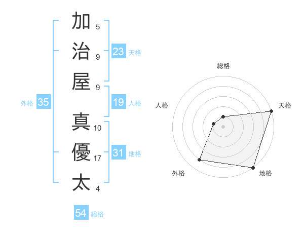 加治屋 真優太さんの天格は23画の5点!