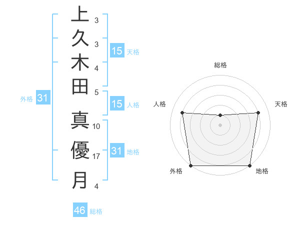 上久木田 真優月さんを姓名の画数から五運を鑑定