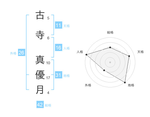 古寺 真優月さんを姓名の画数から五運を鑑定