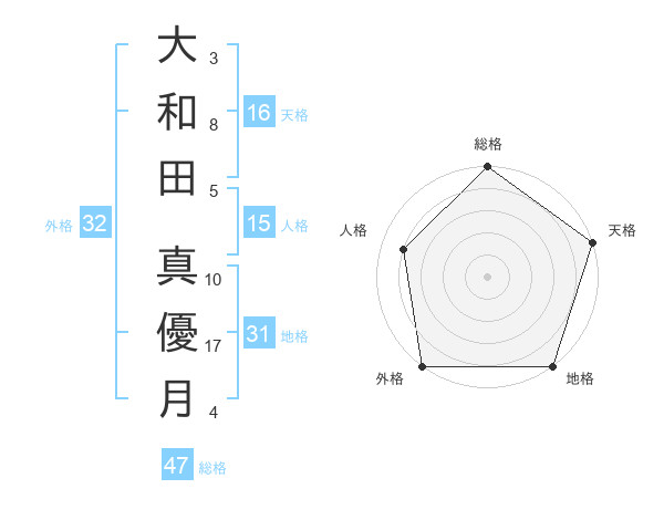 大和田 真優月さんの総格は47画の5点!