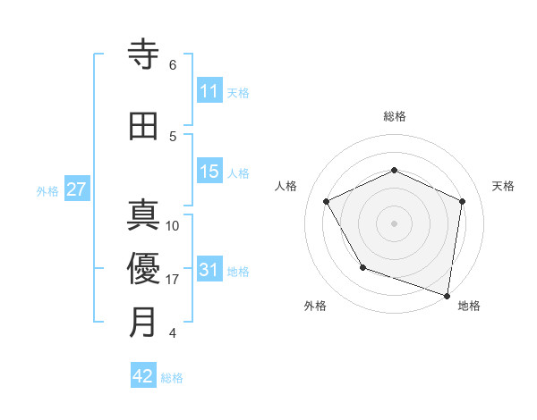 寺田 真優月さんの総格は42画の3点!
