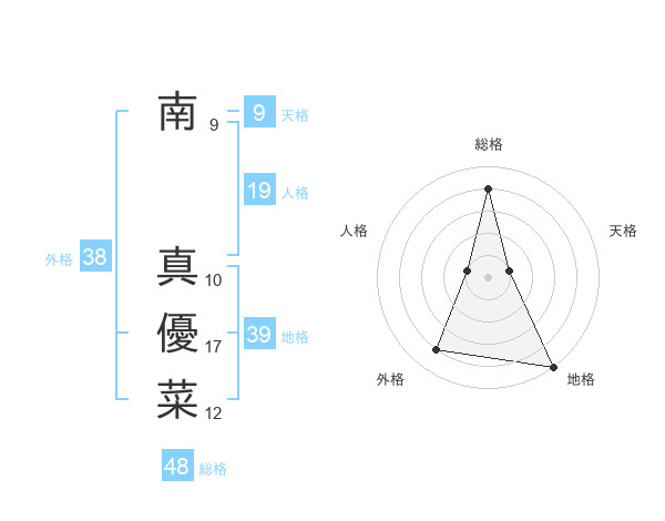 南 真優菜さんの地格は39画の5点!