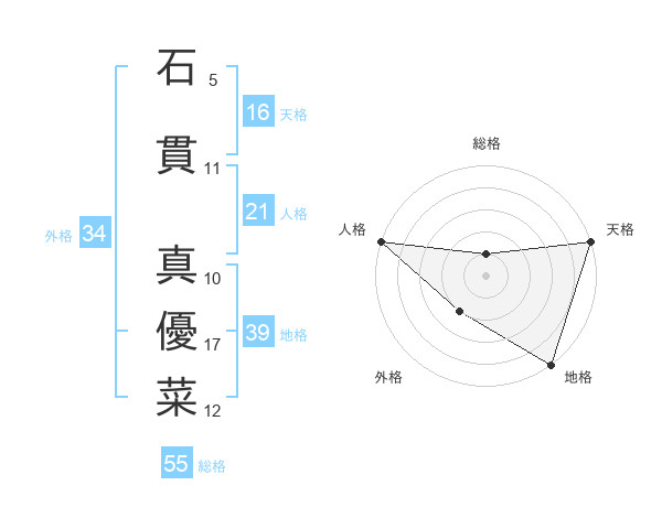 石貫 真優菜さんを姓名の画数から五運を鑑定