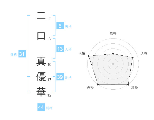 二口 真優華さんの外格は31画の5点!