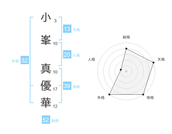 小峯 真優華さんを姓名の画数から五運を鑑定
