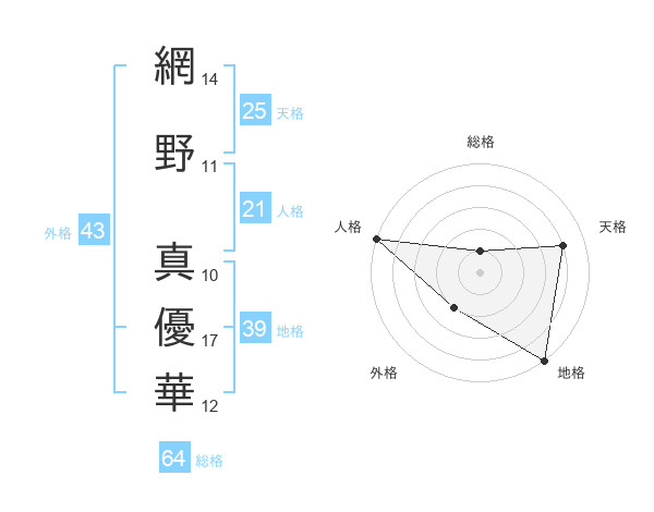 占い結果は姓名判断である以上、良い場合も悪い場合もありますが、決してお名前を誹謗中傷するものでなく、画数の自動計算によって得られたものです。また、本サイトの検索によって得られた鑑定結果で、第三者を誹謗中傷したり名誉を棄損するような行為を禁じます。