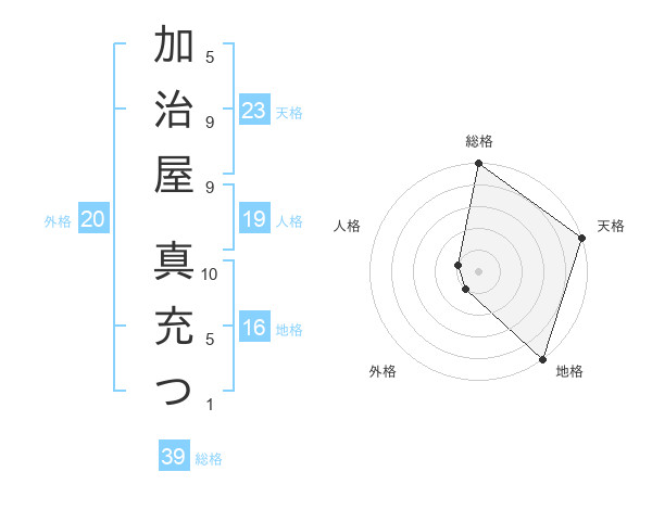 加治屋 真充つさんを姓名の画数から五運を鑑定
