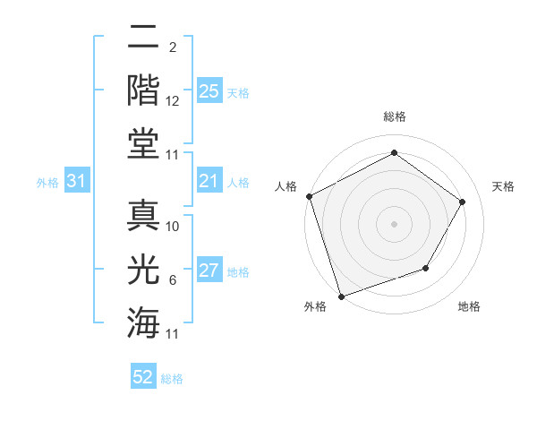 二階堂 真光海さんの外格は31画の5点!