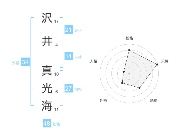 沢井 真光海さんを姓名の画数から五運を鑑定