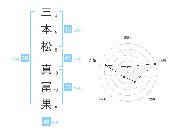 三本松 真冨果さんの地格は30画の2点!