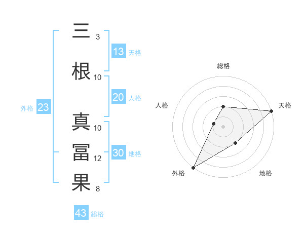 三根 真冨果さんの外格は23画の5点!