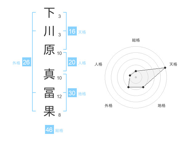 下川原 真冨果さんの外格は26画の2点!