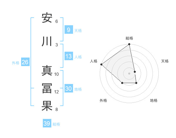 安川 真冨果さんを姓名の画数から五運を鑑定