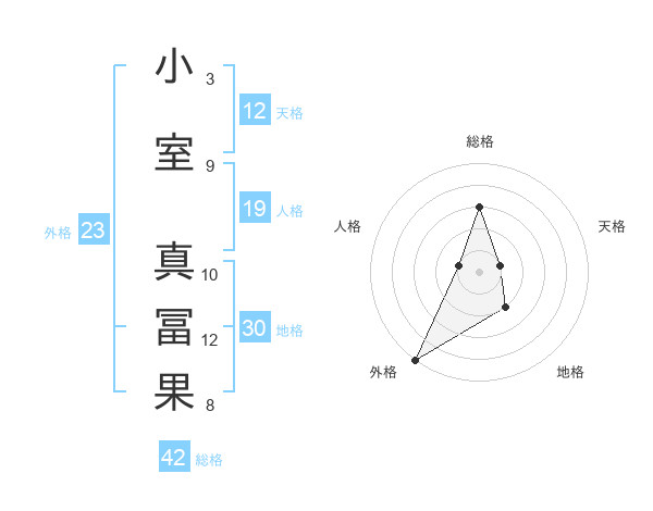 小室 真冨果さんの総格は42画の3点