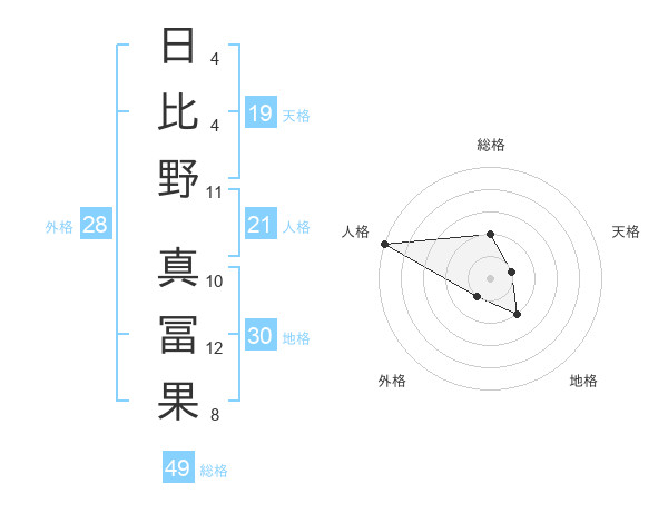 日比野 真冨果さんを姓名の画数から五運を鑑定