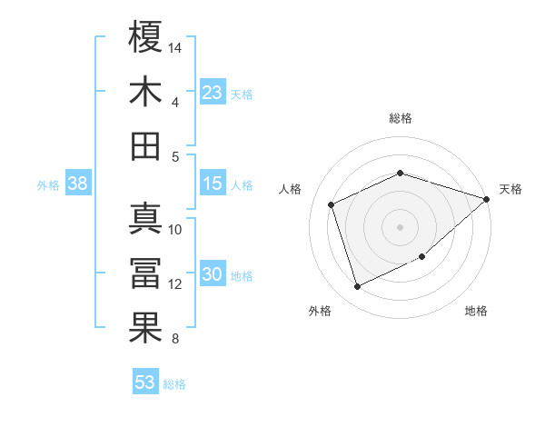 榎木田 真冨果さんの天格は23画の5点
