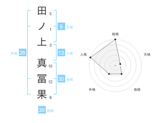 田ノ上 真冨果さんを姓名の画数から五運を鑑定