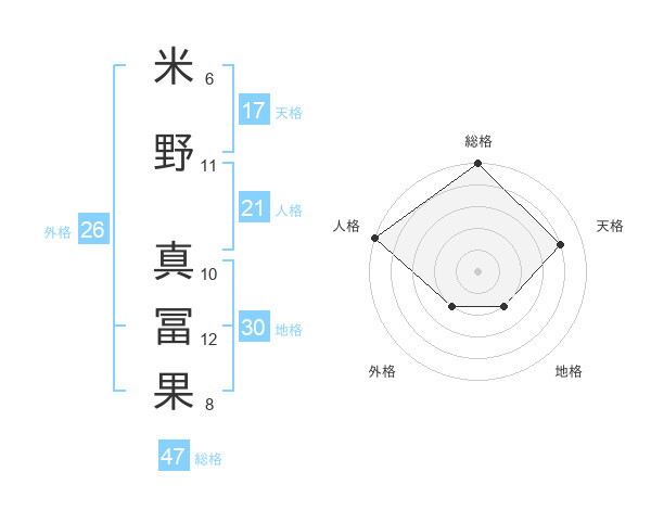 米野 真冨果さんを姓名の画数から五運を鑑定
