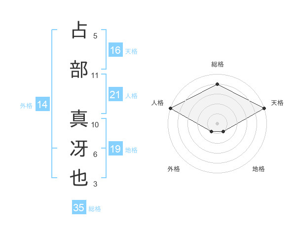占部 真冴也さんを姓名の画数から五運を鑑定