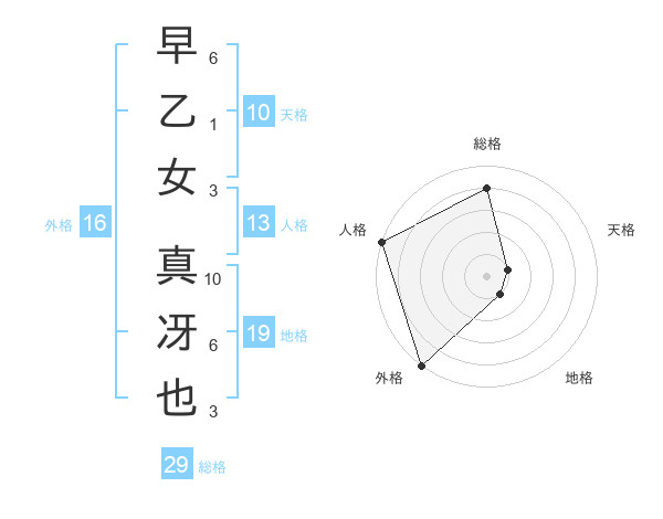 早乙女 真冴也さんを姓名の画数から五運を鑑定