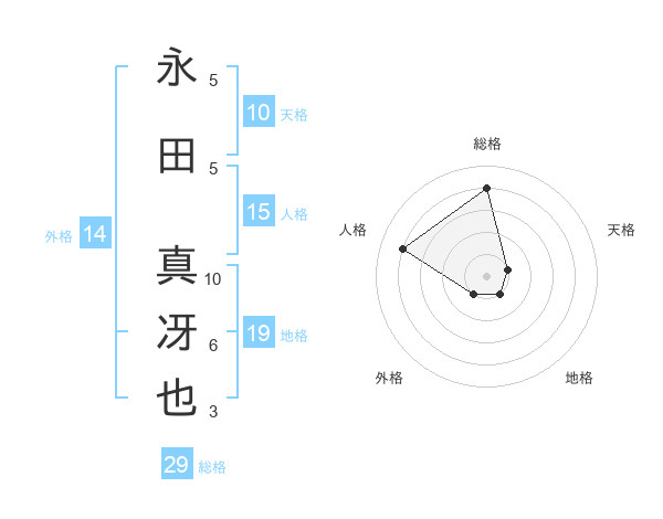 永田 真冴也さんを姓名の画数から五運を鑑定