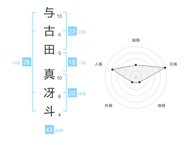与古田 真冴斗さんを姓名の画数から五運を鑑定