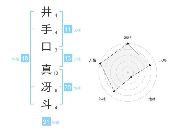 井手口 真冴斗さんの総格は31画の5点!