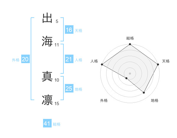 出海 真凛さんの総格は41画の5点!