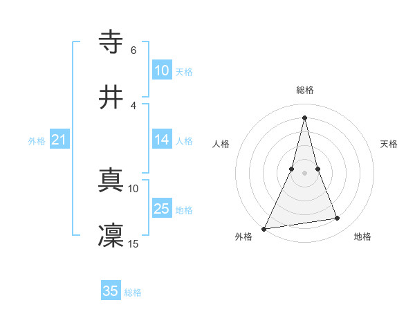 寺井 真凜さんの総格は35画の4点!