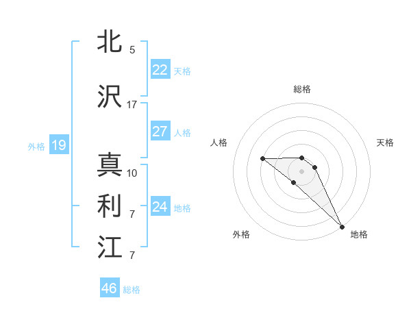 北沢 真利江さんを姓名の画数から五運を鑑定