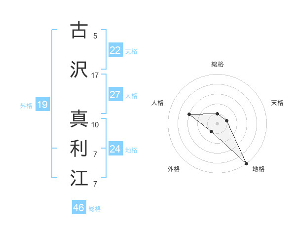 古沢 真利江さんを姓名の画数から五運を鑑定