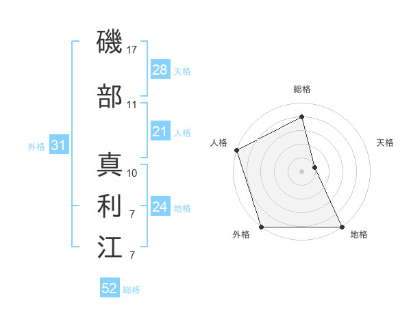磯部 真利江さんを姓名の画数から五運を鑑定