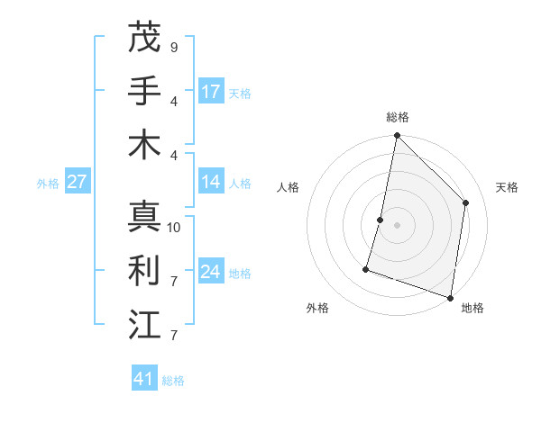 茂手木 真利江さんを姓名の画数から五運を鑑定