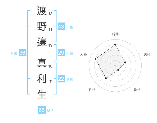 渡野邉 真利生さんの総格は65画の4点!