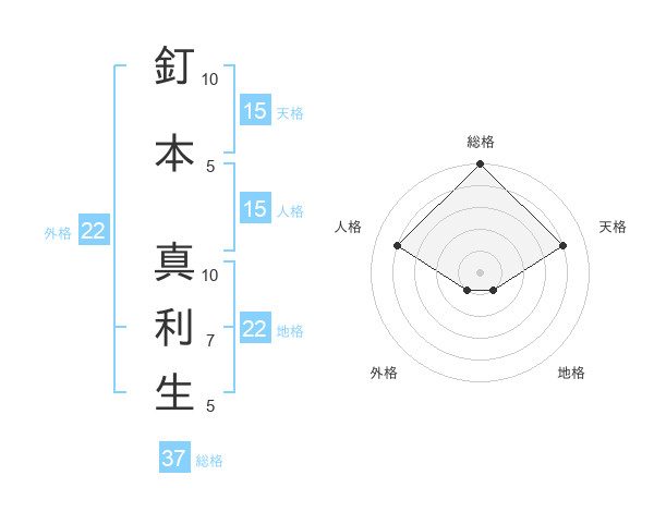 釘本 真利生さんを姓名の画数から五運を鑑定