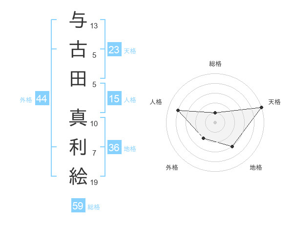 与古田 真利絵さんを姓名の画数から五運を鑑定