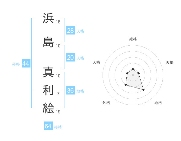 浜島 真利絵さんを姓名の画数から五運を鑑定