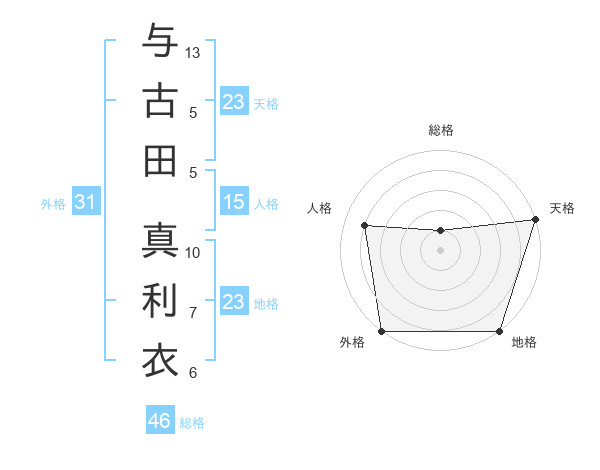 与古田 真利衣さんを姓名の画数から五運を鑑定