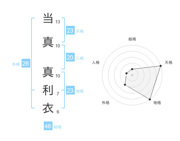 当真 真利衣さんを姓名の画数から五運を鑑定