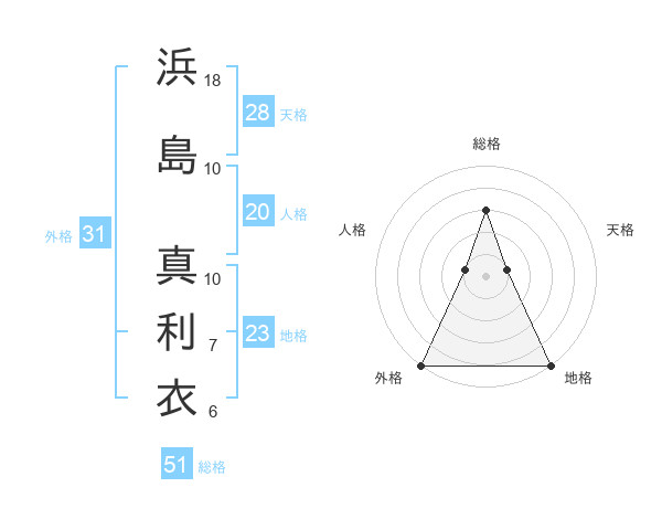 浜島 真利衣さんを姓名の画数から五運を鑑定