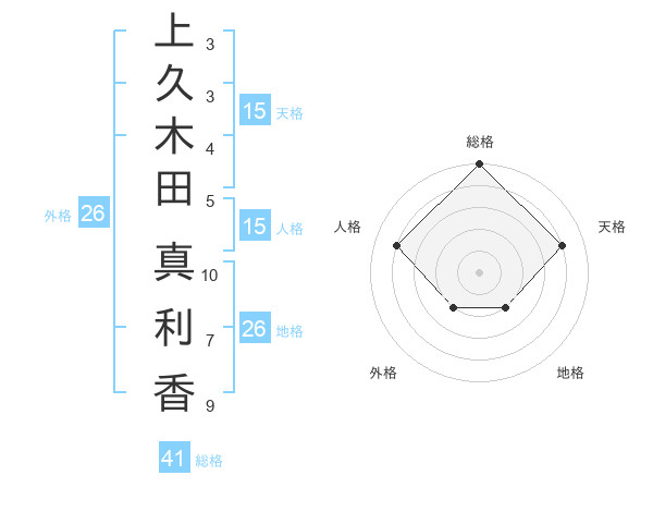 上久木田 真利香さんの天格は15画の4点!