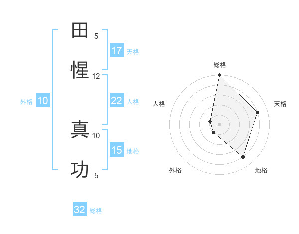 田惺 真功さんの総格は32画の5点!