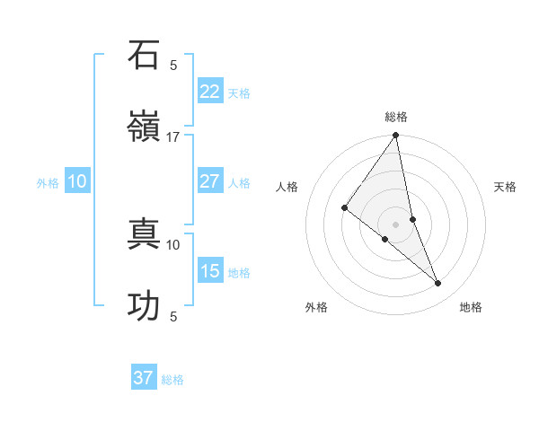 石嶺 真功さんを姓名の画数から五運を鑑定