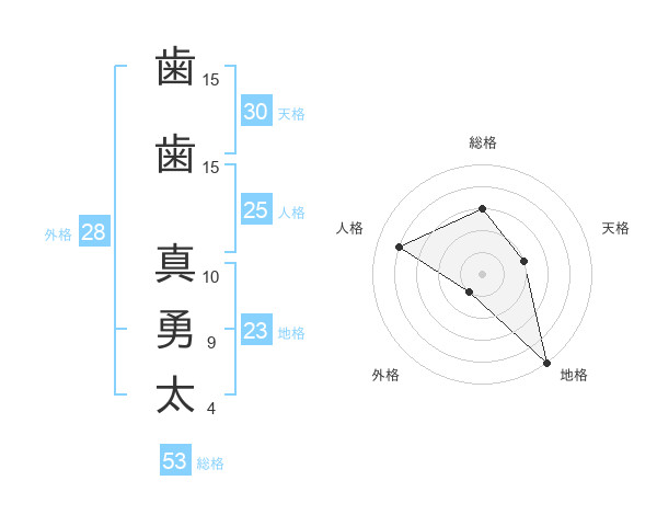 歯歯 真勇太さんの総格は53画の3点!